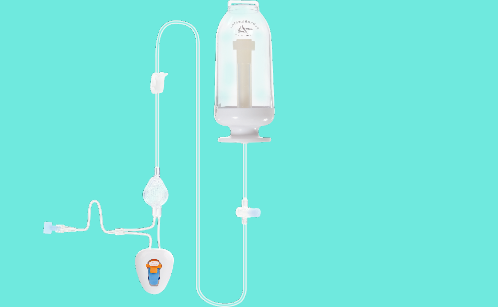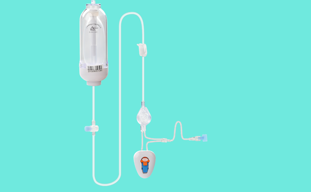本產品由單向閥加藥裝置、彈力貯液裝置、藥液過濾器(孔徑:5μm)、自控給液裝置、限流裝置、管路(不小于800mm)和外圓錐接頭部件組成。單向閥加藥裝置原材料為ABS、聚酯膜,自控給液裝置為pvc、abs、硅橡膠、1Cr18Ni9,限流裝置為PVC,管路為PVC,外圓錐接頭部件為PC、PE,PVC含增塑劑為DEHP。環(huán)氧乙烷滅菌,一次性使用。
