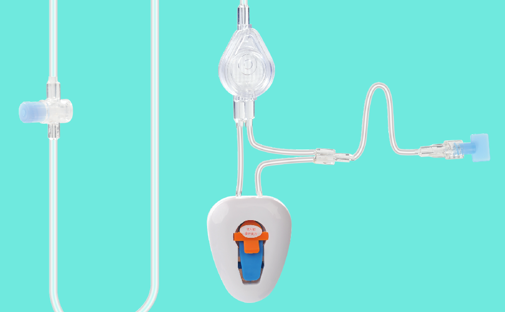 本產品由單向閥加藥裝置、彈力貯液裝置、藥液過濾器(孔徑:5μm)、自控給液裝置、限流裝置、管路(不小于800mm)和外圓錐接頭部件組成。單向閥加藥裝置原材料為ABS、聚酯膜,自控給液裝置為pvc、abs、硅橡膠、1Cr18Ni9,限流裝置為PVC,管路為PVC,外圓錐接頭部件為PC、PE,PVC含增塑劑為DEHP。環(huán)氧乙烷滅菌,一次性使用。